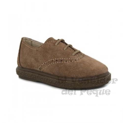 Zapato de niño con troquelado inglés. cierre mediante cordones. Es de textil, tanto por dentro como por fuera, por lo que son muy cómodos y hace que transpire el pie adecuadamente. La suela es de goma adherente a las superficies.