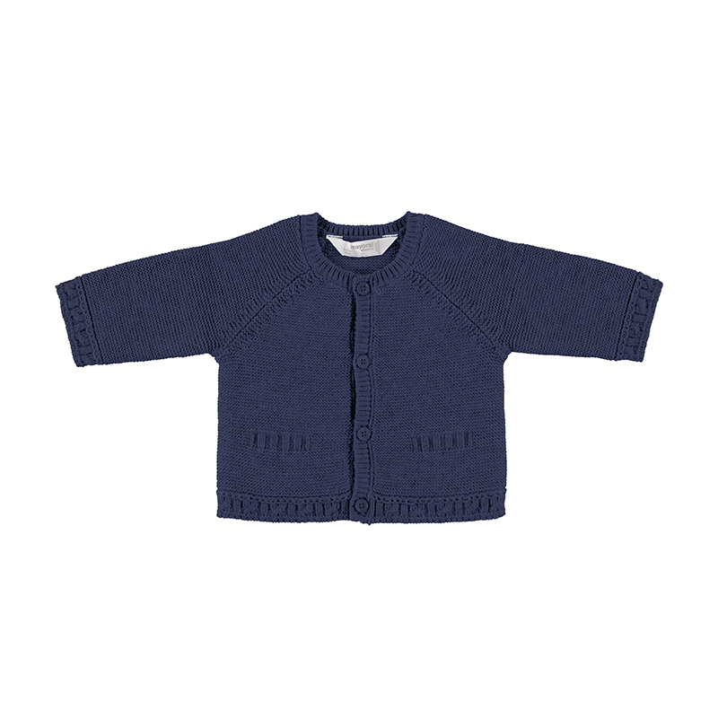 Rebeca larga para bebé. Cuello redondo y cierre mediante botones.