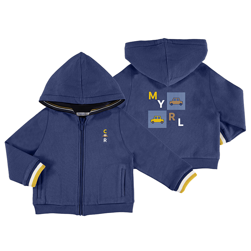 Sudadera con capucha para niño. Cierre mediante cremallera.