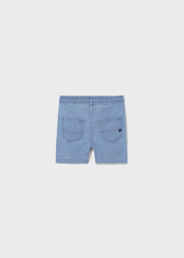 Bermuda vaquera para niño. Cintura ajustable mediante cordón.