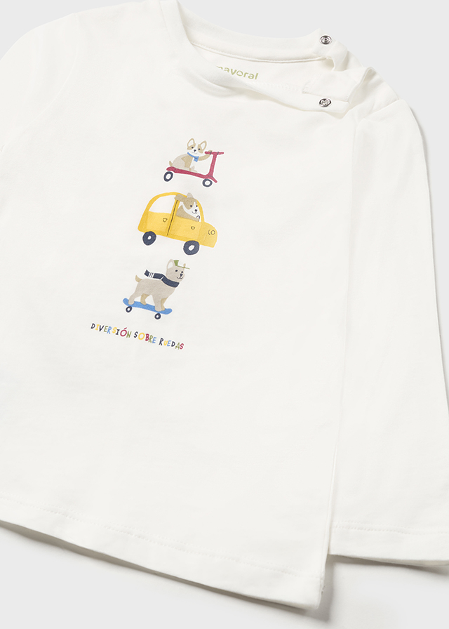 Conjunto de 3 piezas para niño. Compuesto por chaleco, camiseta de manga larga y pantalón.
