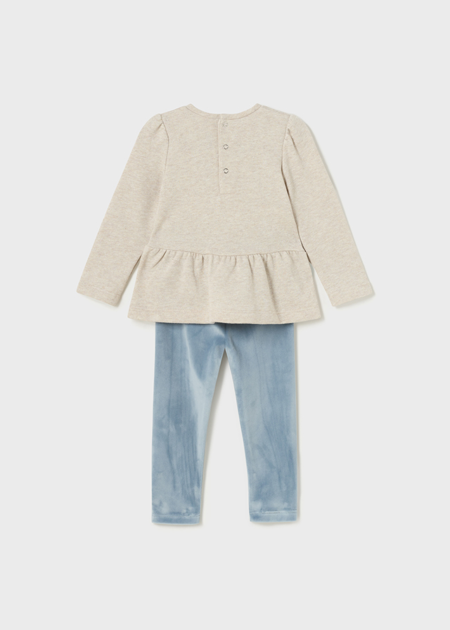 Conjunto de 2 piezas para niña. Compuesto por sudadera y leggins de terciopelo.