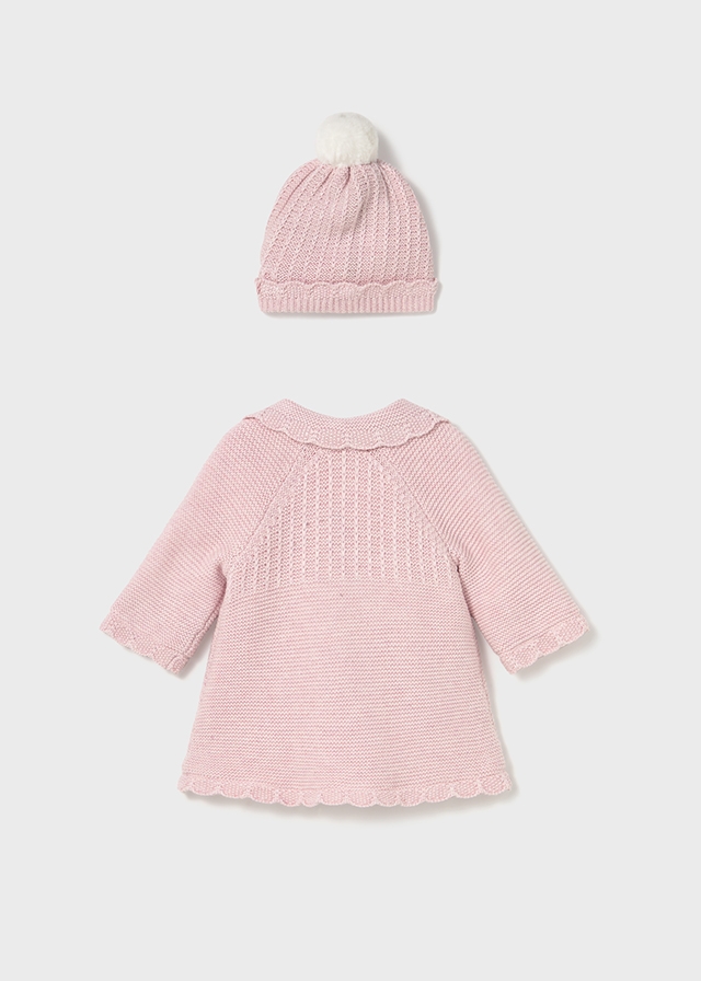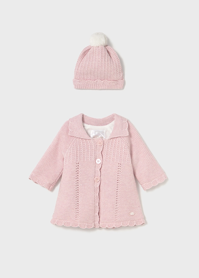 Abrigo y gorro tricot para niña. Cierre con botones.