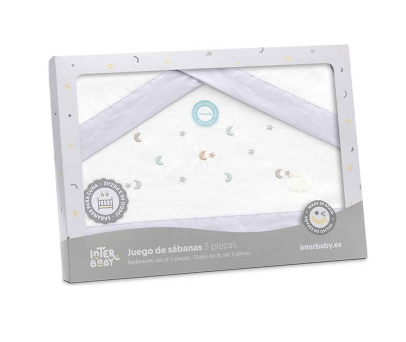 Juego de sábanas de franela para minicuna. Compuesto por sábana, bajera y funda de almohada.