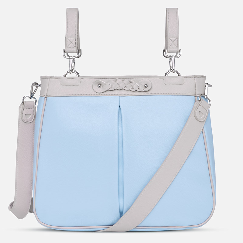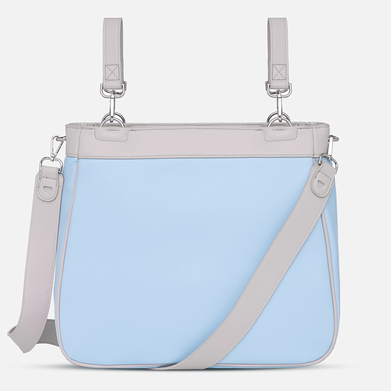 Bolso de tipo panera para carrito de bebé, perfecto para llevar con estilo todo lo necesario durante un paseo con tu pequeño/a. Cierre con cremallera. Moderno exterior de polipiel. Incorpora asas de colgado desmontables, pudiendo engancharlo fácilmente a la sillita de tu bebé. Elementos de adorno: detalles trenzados. Este artículo tiene unas dimensiones de 31 x 37 x 13 cm.