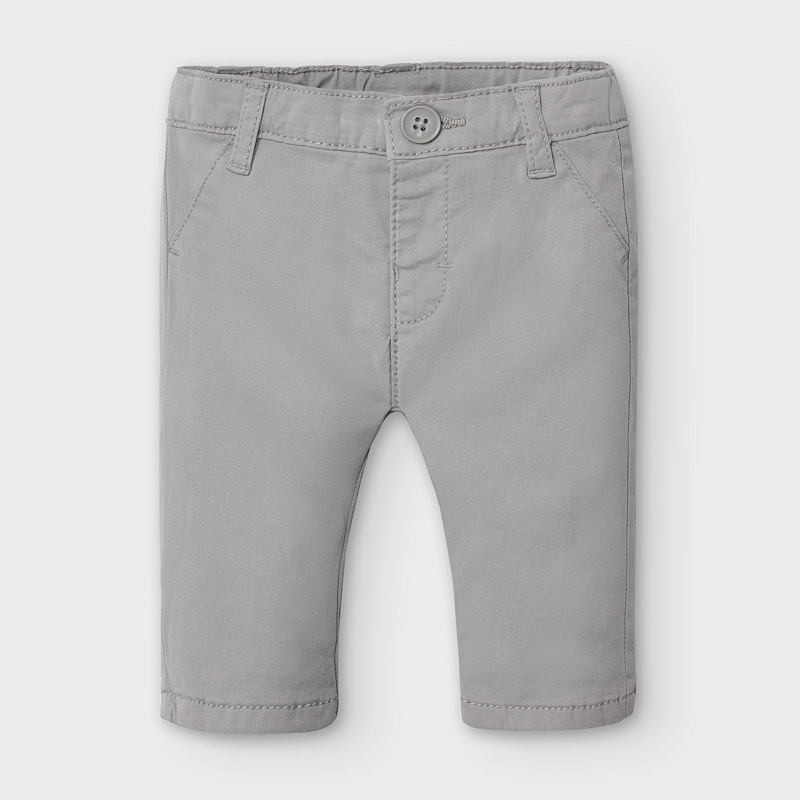 Pantalón largo para recién nacido. Tipo chino y corte recto, perfecto para las ocasiones más elegantes. Prenda básica con diseño clásico, ideales para completar cualquier look. Cinturilla ajustable. Cómodo tejido de sarga de gran resistencia.