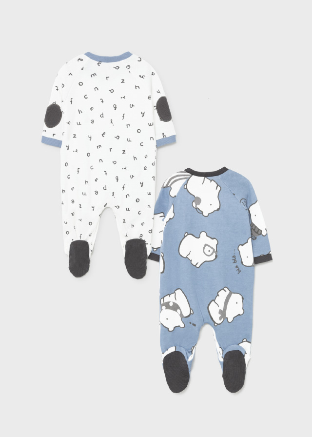 Set 2 Pijamas para recién nacido. Cierre lateral y en la entrepierna con botones a presión.