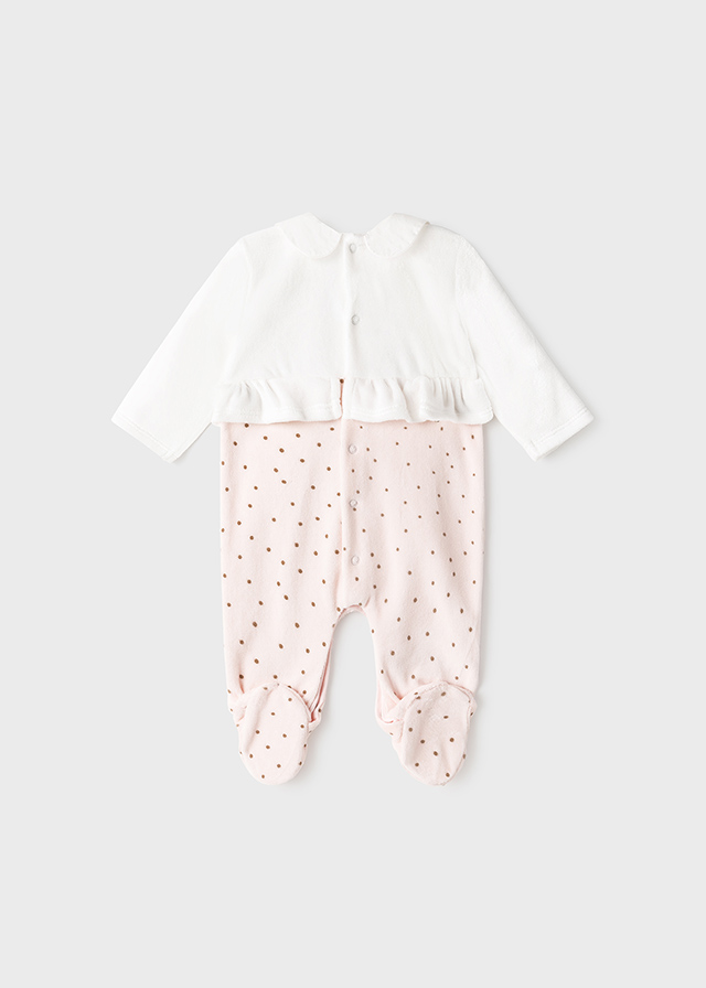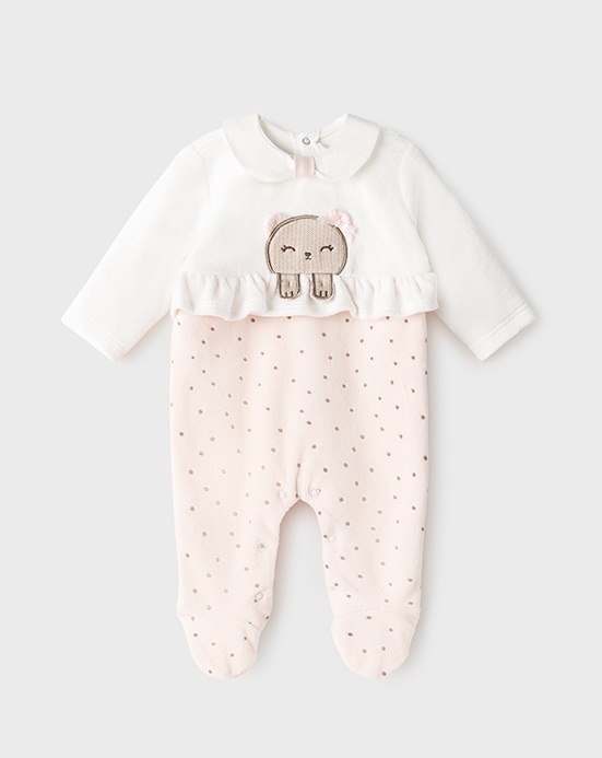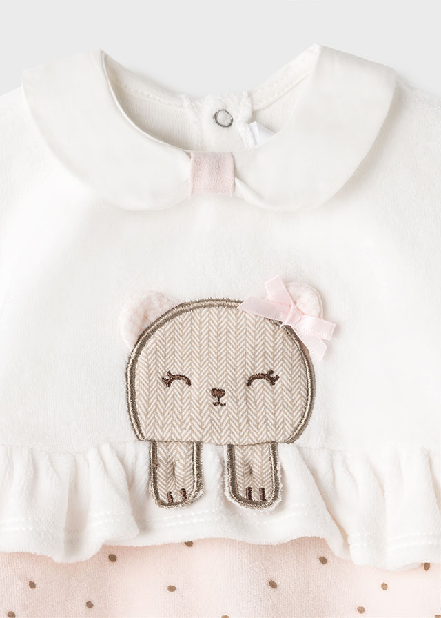 Pijama pelele tundosado para niña. Cierre trasero mediante botones a presión. Las tallas mayores tienen suela antideslizante.