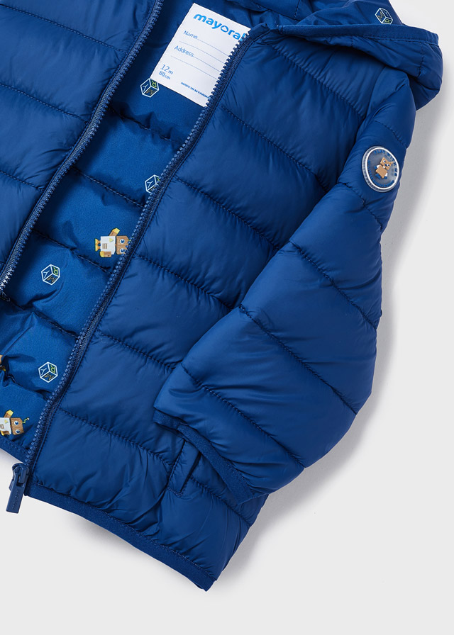 Chaquetón acolchado con capucha para niño. Cierre central mediante cremallera. Incluye bolsa para guardarlo.