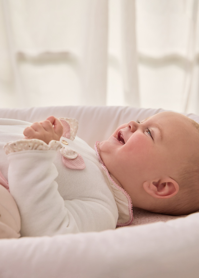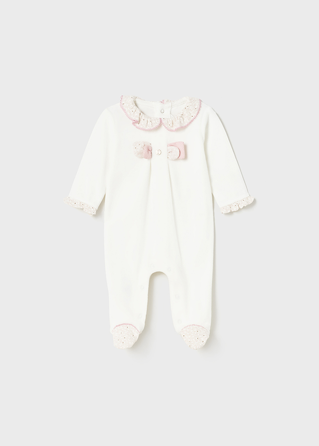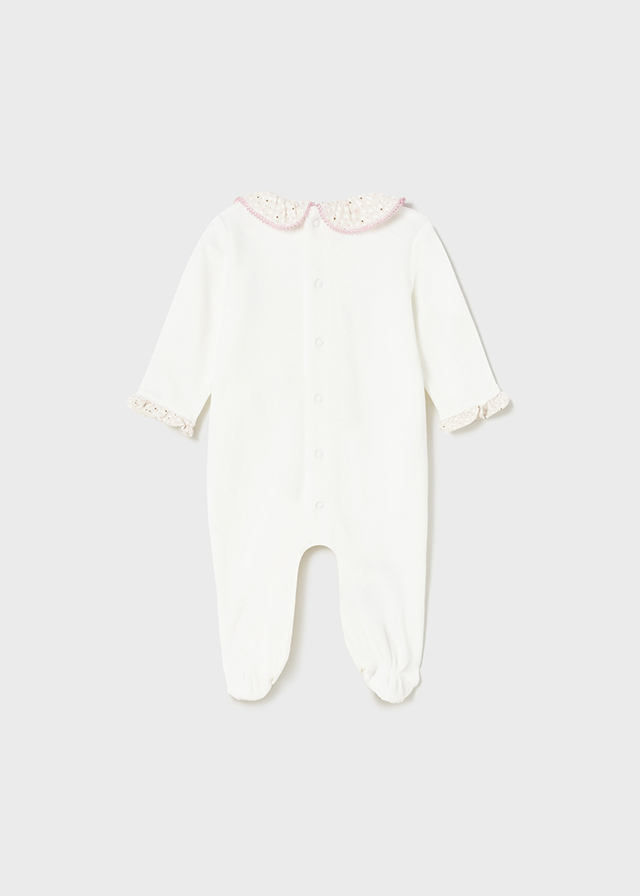Pelele tundosado para niña, cierre mediante botones a presión en la espalda y la entrepierna.