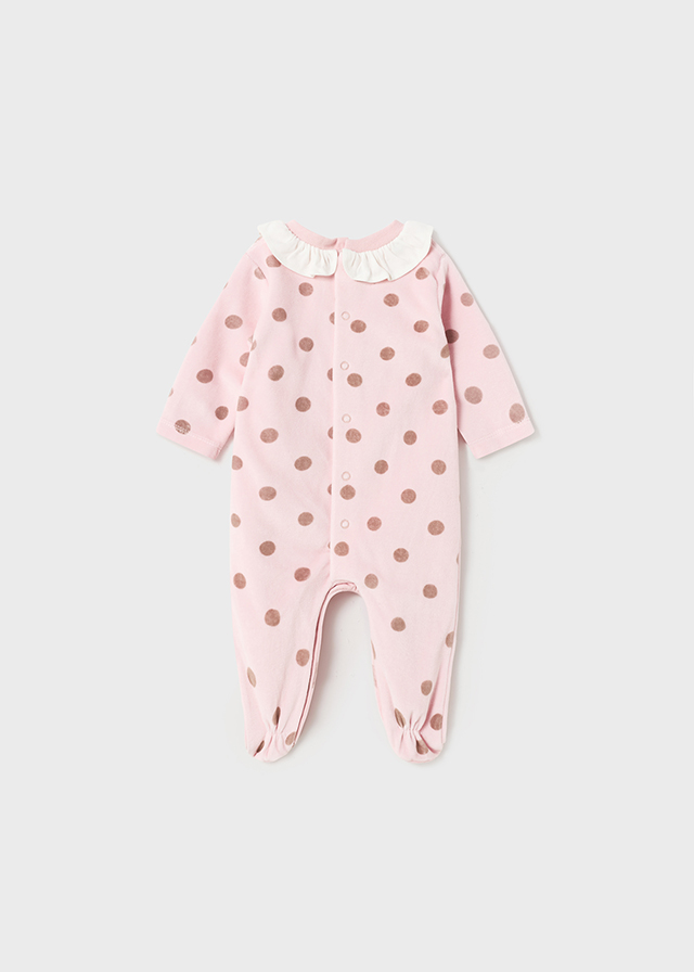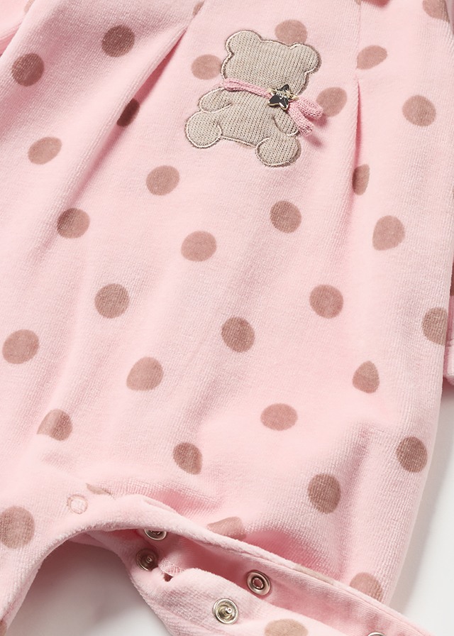 Pelele tundosado para niña, cierre mediante botones a presión en la espalda y la entrepierna.