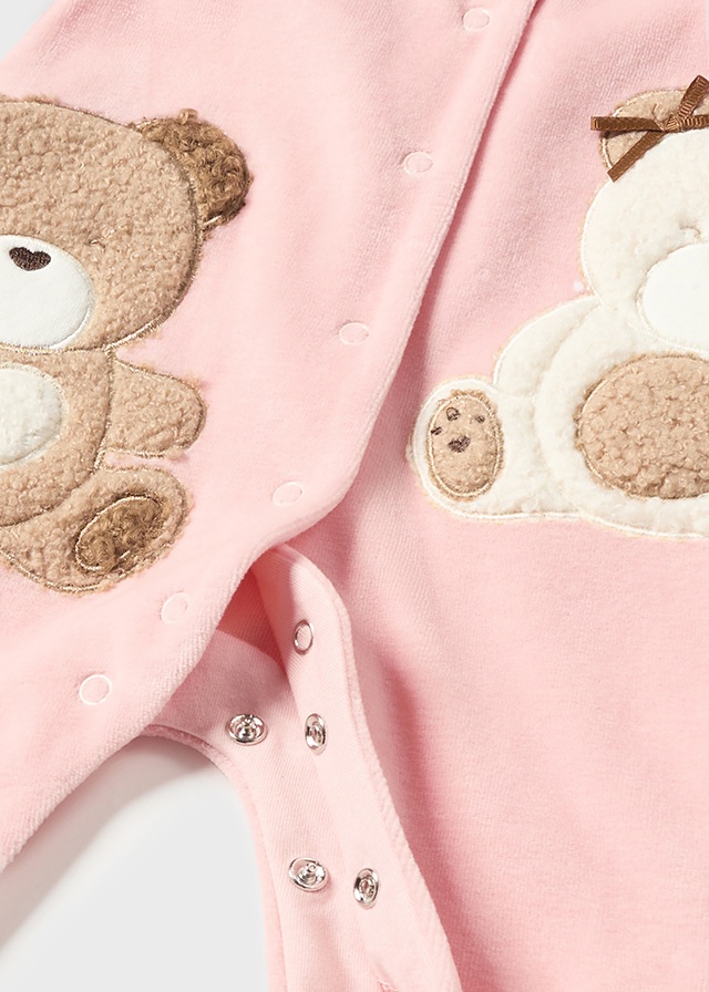 Pelele tundosado para niña, cierre mediante botones a presión en la parte delantera y la entrepierna.