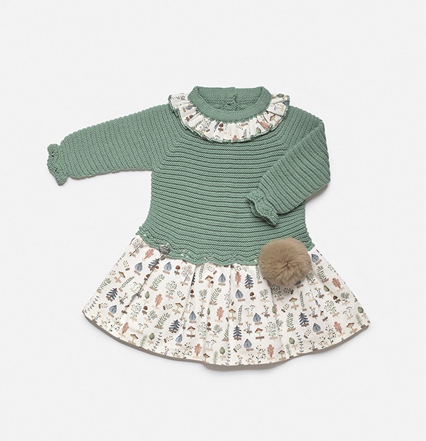 Vestido de talle bajo para niña. Original combinación de tejidos.