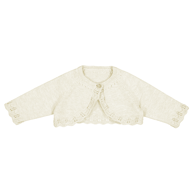 Rebeca corta. Cierre mediante botón en la parte superior de la prenda.