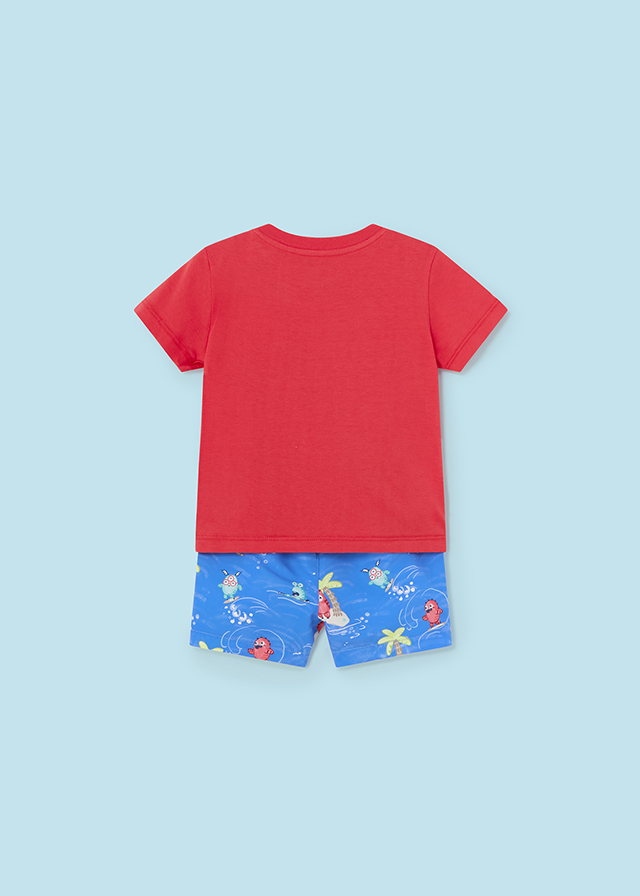 Conjunto de dos piezas para niño. Compuesto por bañador y camiseta a juego.