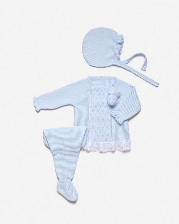 Conjunto de invierno de primera puesta, compuesto por Jubón bebé, polaina y gorro.