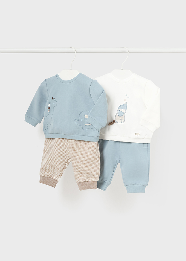 Conjunto de 4 piezas para bebé, compuesto por dos pantalones y dos sudaderas.
