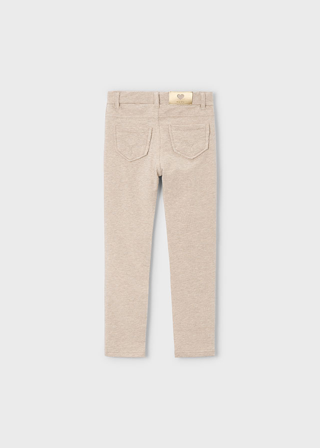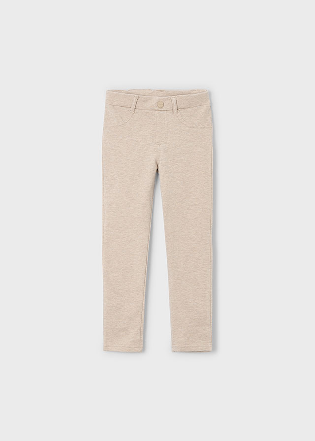 Pantalón largo de la corte ajustado para niña. Cintura elástica ajustable y cierre mediante botón a presión.