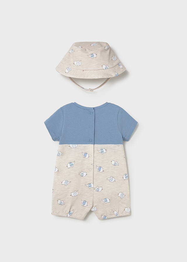 Pelele con gorro para bebé. Camisa con cuello superpuesta.